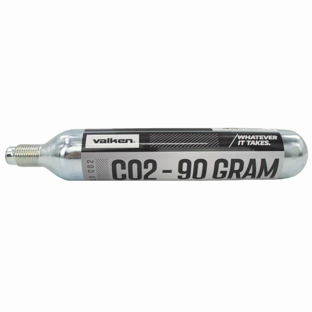 An ideal solution for players without access to nearby air fill stations, this Valken 90 gram Co2 cartridge is an affordable, disposable CO2 source for paintball, airsoft or air guns. Usable on any paintball gun able to use CO2 as a power and propellant source (with adapter #96697), this disposable CO2 cartridge offers hundreds, rather than dozens of shots like smaller CO2 cartridges while remaining a simple and affordable option!