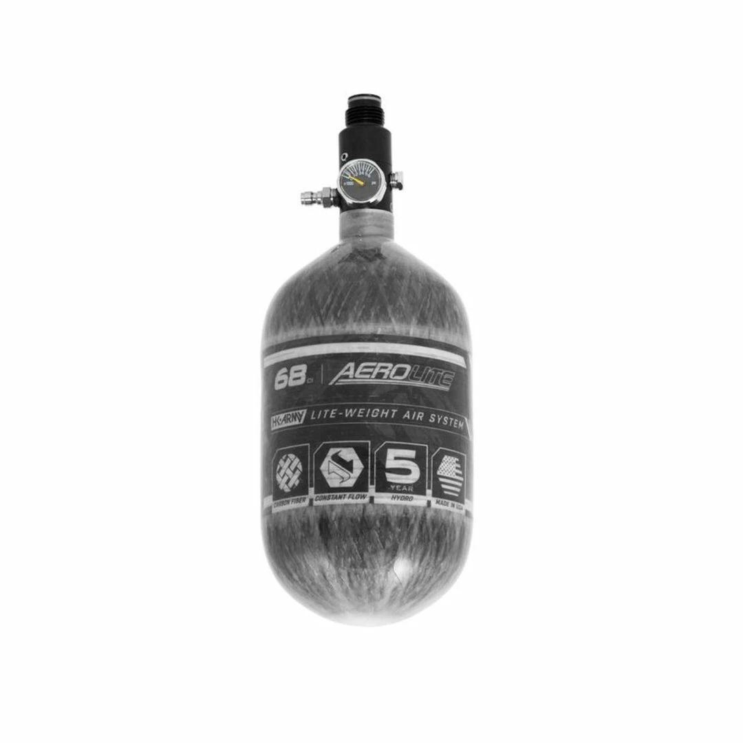 The HK Army Aerolite paintball compressed air system is a lightweight, full-featured paintball air tank with an impressive price! The carbon fiber bottle is light and attractive, with a 5-year hydro test cycle and the aluminum compressed air regulator is simple and reliable, with an 800psi output pressure compatible with almost any modern paintball gun! Paintball players in search of a paintball compressed air bottle that is simple, reliable, lightweight and affordable now have a great option with the HK Army Aerolite paintball air tank!