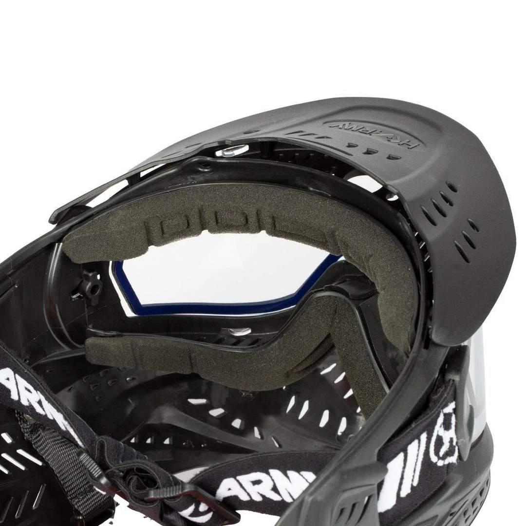 A lightweight, comfortable paintball goggle system, the new HK HSTL paintball goggle is packed with features at a price any paintball player can afford! Featuring a snap-in lens retention system that allows the user to quickly remove, clean or replace their goggle lens without tools, plus snap-in upper and lower goggle foam, a chin strap and plenty of protective coverage for the face, chin, ears, forehead and neck, the HK HSTL paintball goggle is constructed from rugged thermoplastic. *Single Lens Version – thermal lenses or thermal lens-equipped versions available!