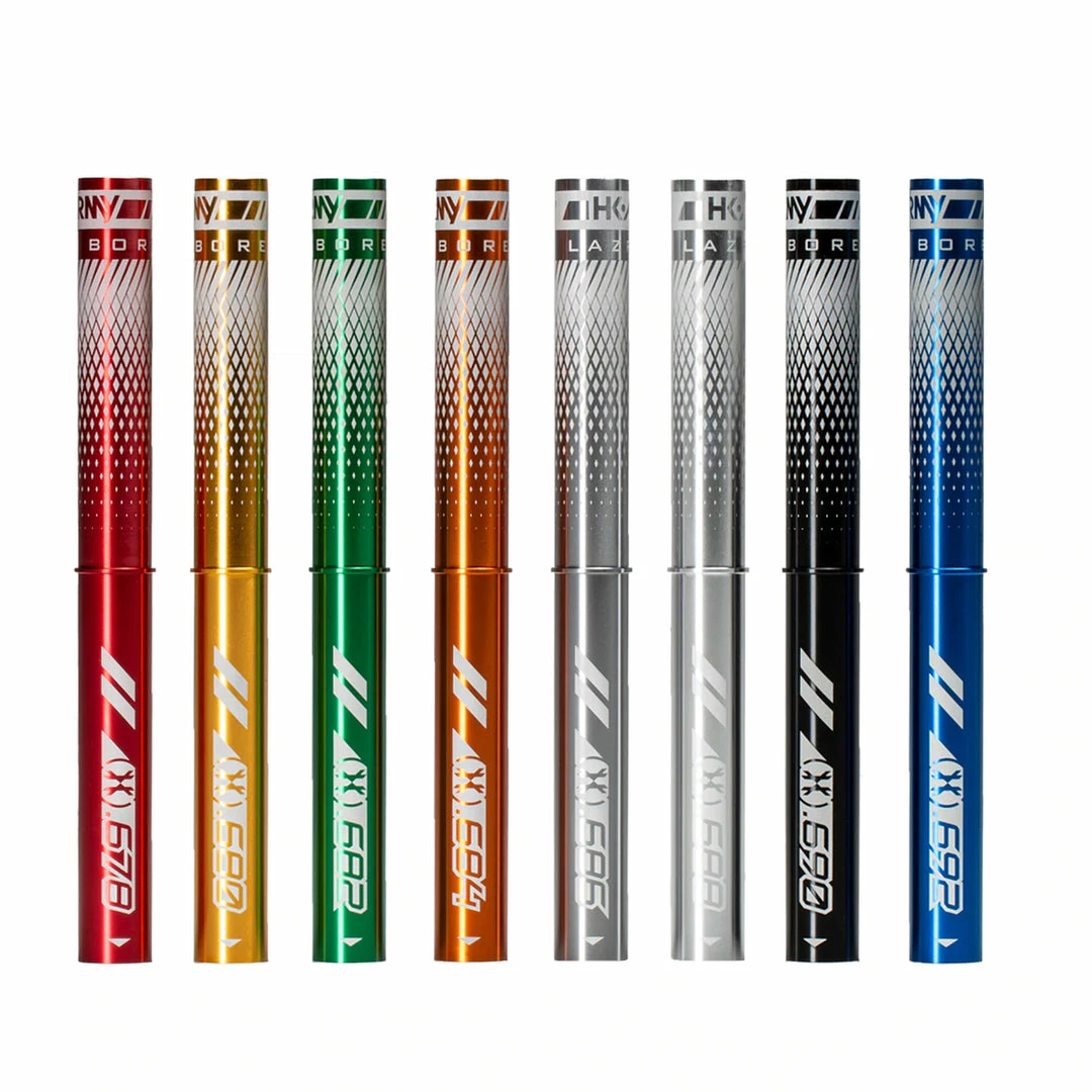 Crafted with accuracy and style in mind, the LAZR Barrel Kit delivers unrivaled performance. The precision barrel bore-honing used in the development of the LAZR allows for improved diameter uniformity and a smooth interior finish. This attention to surface detail will deliver you the ball-on-ball accuracy you are looking for in a high-end barrel system. Easily change the control bore by sliding the bore inserts in to the barrel back.Â
