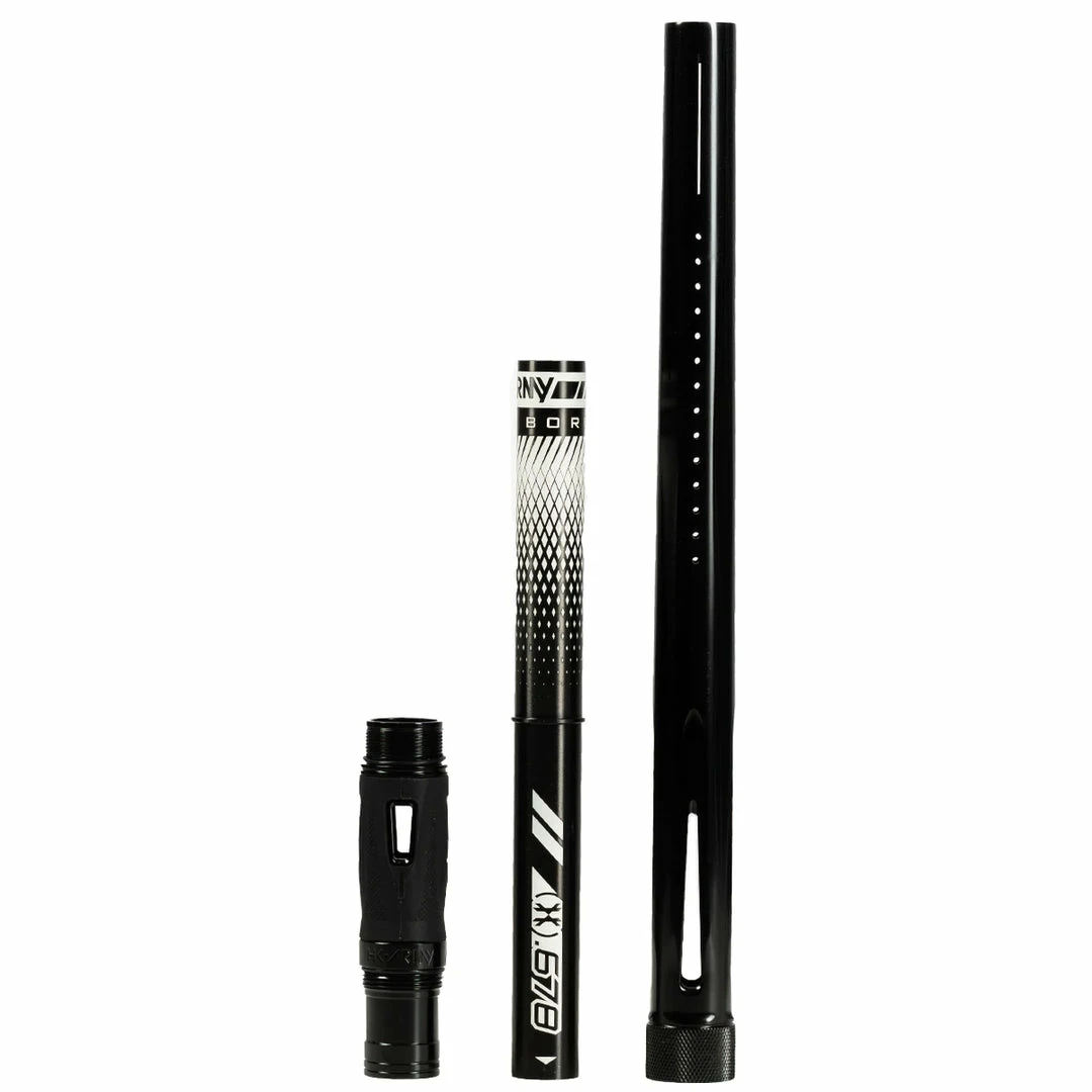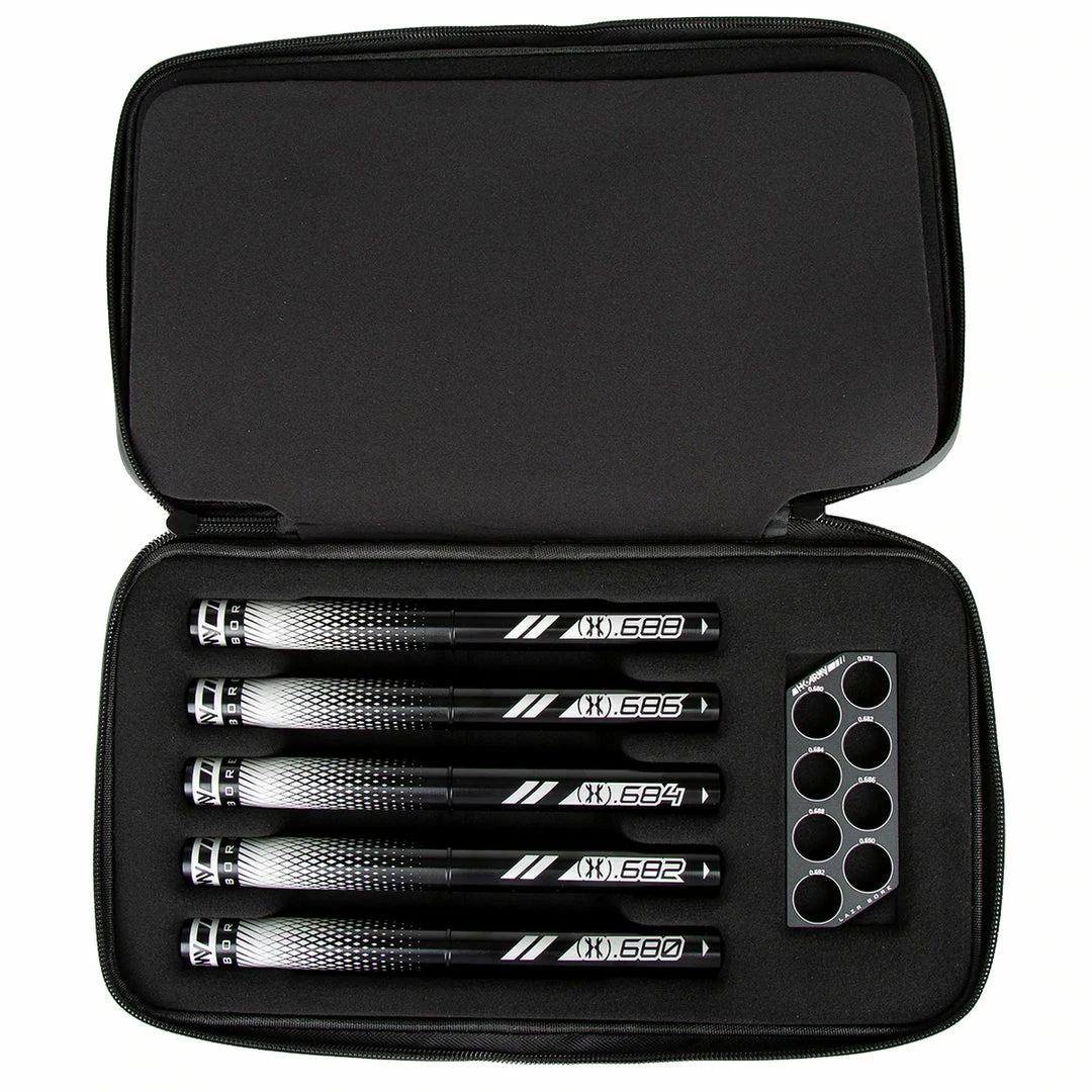 Crafted with accuracy and style in mind, the LAZR Barrel Kit delivers unrivaled performance. The precision barrel bore-honing used in the development of the LAZR allows for improved diameter uniformity and a smooth interior finish. This attention to surface detail will deliver you the ball-on-ball accuracy you are looking for in a high-end barrel system. Easily change the control bore by sliding the bore inserts in to the barrel back.Â