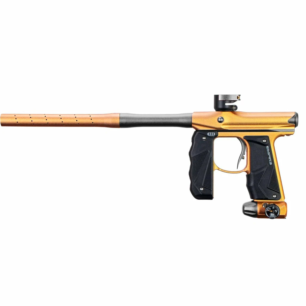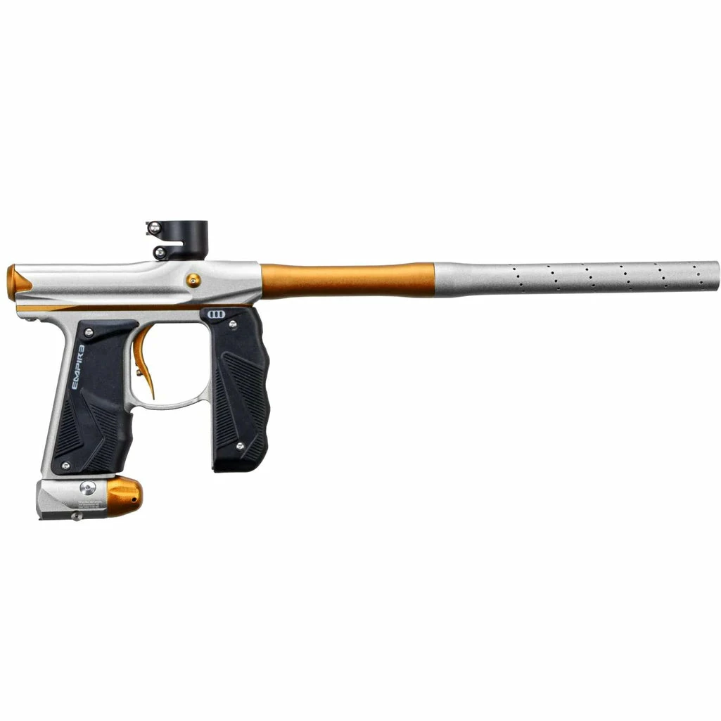 The Empire Mini™ GS is the next generation of a paintball marker legend. The team at Empire has taken the proven Mini marker platform and designed and developed it to be even better. In addition to the battle proven Mini engine the GS includes a full wrap-around rubber foregrip that creates a secure grip and protection from paint and the elements. The Mini GS also adds an On/Off ASA that eliminates any thread issues and makes for smooth removal of your tank.