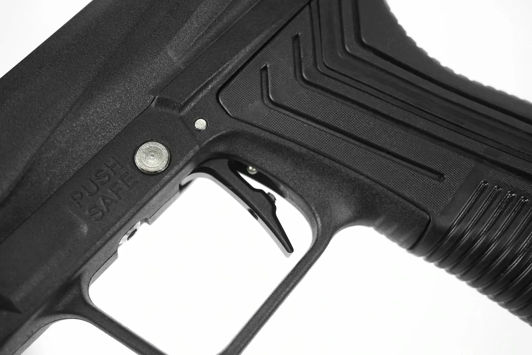 The Etha3 offers players an electronic marker platform that takes everything great about its predecessor a step further. It’s sleek approach to ergonomics, coupled with some notable upgrades takes the Etha platform into a new competitive realm. Its quick-release bolt assembly makes a huge difference to accessibility and maintenance on, or off the field. The aluminium low-rise feedneck reduces the overall height of the marker for a tighter, more compact player profile. And the new aluminium blade trigger brings a sharpness and responsiveness only found on more expensive marker platforms.