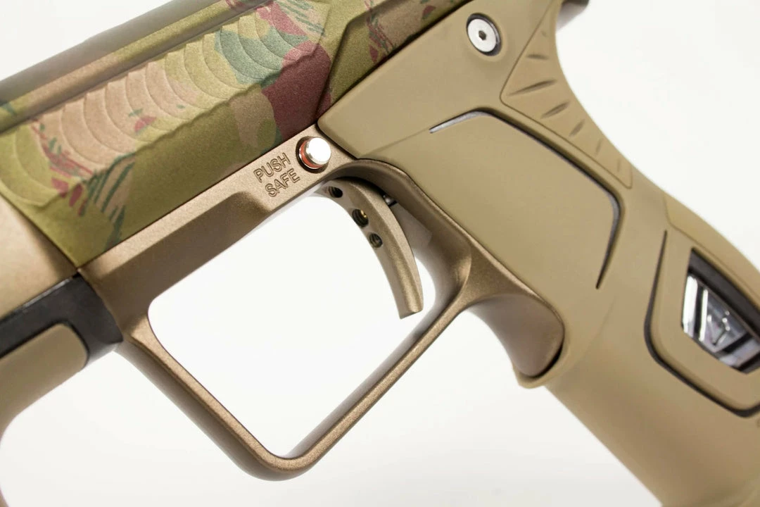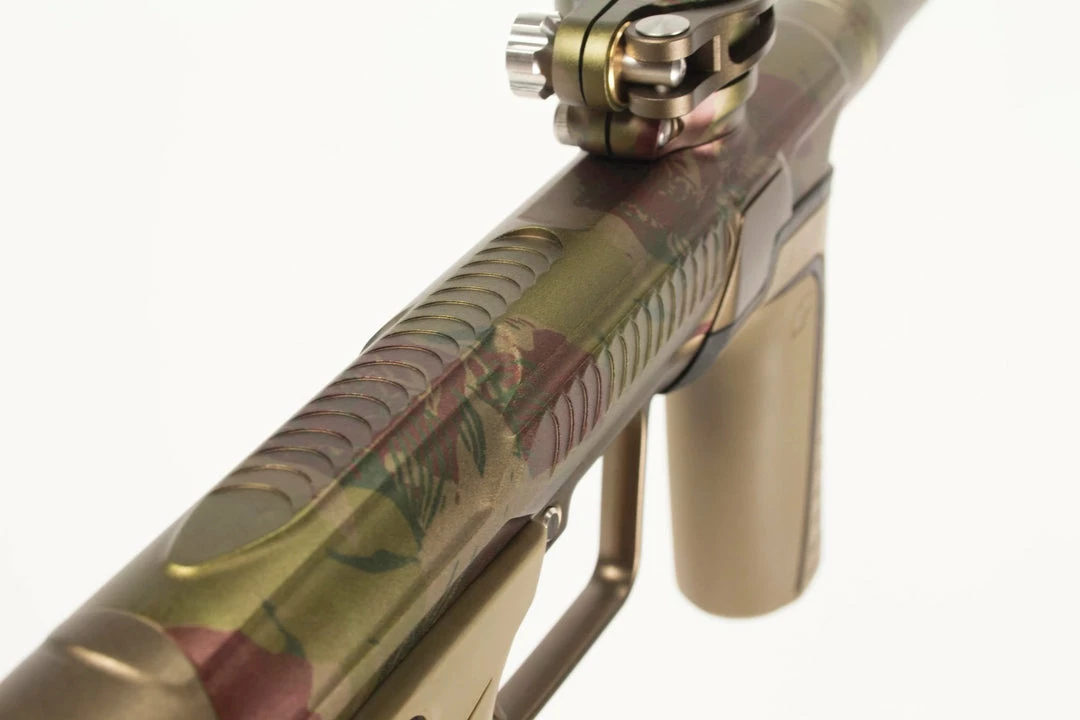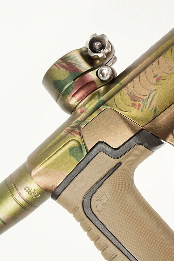 This Second Generation Gtek, with its hoseless design, stretched out stance, simple flowing lines and exceptional ergonomics have combined with the iconic Gamma Core drivetrain to produce a paintball marker of outstanding performance and feel. Its bulletproof reliability, smooth, consistent, and quiet shot, and ability to shoot even the most fragile of paint in any conditions, climate, or temperature, are testament to the outstanding engineering and thought that has gone into its design and manufacture.