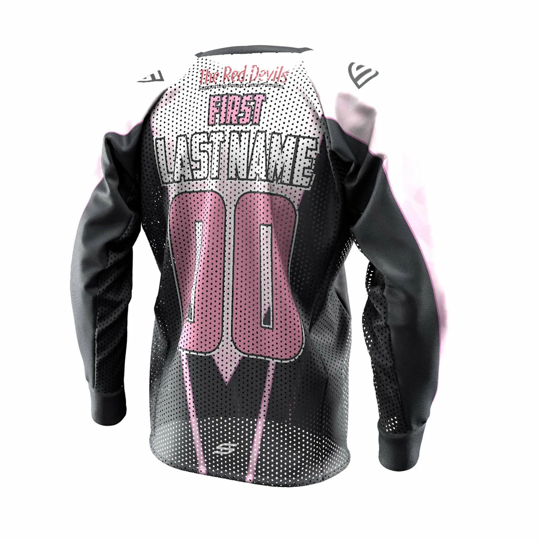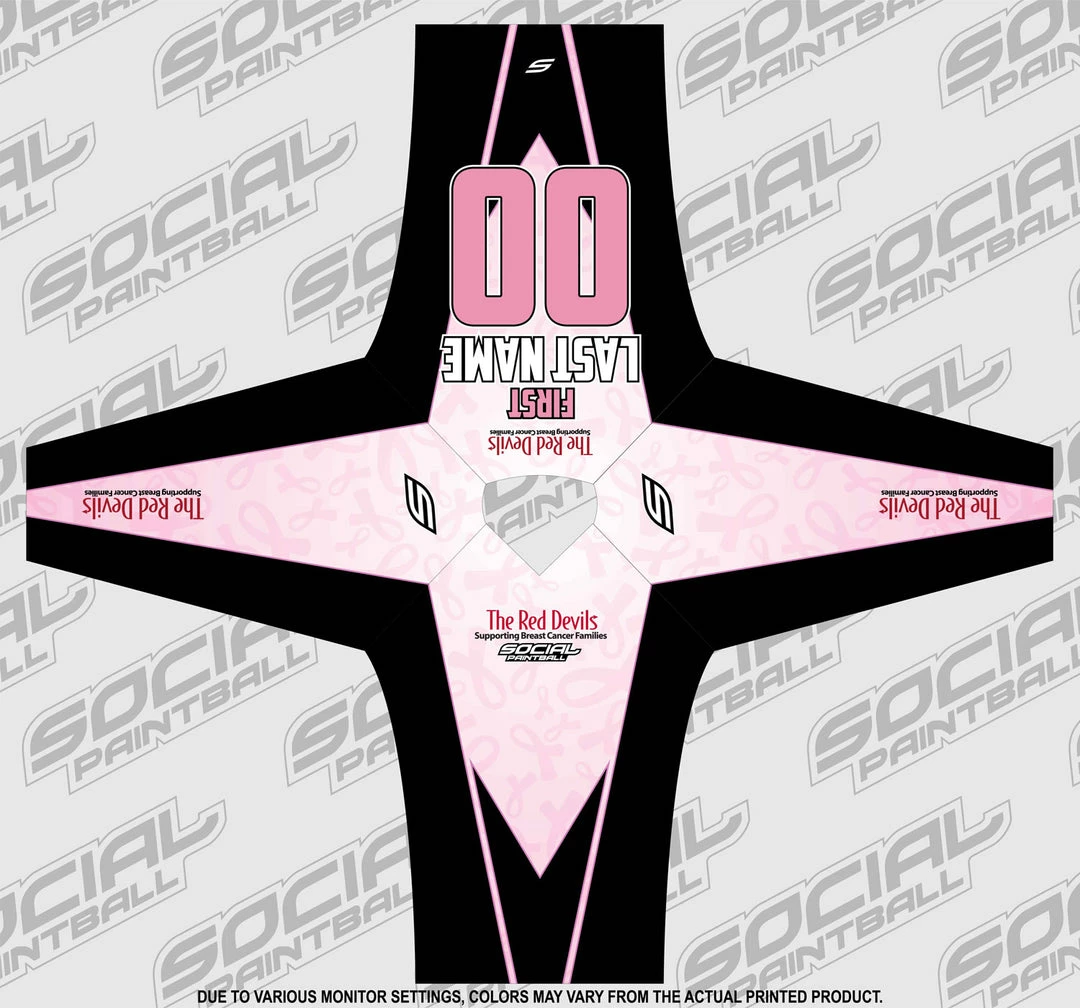 The Official Limited Edition 2018 Social Paintball and The Red Devils Team Defiance event custom paintball jersey is now yours to order. These jerseys are being made on a limited run for the event. This will be made on our SMPL unpadded paintball jersey cut. The jersey features a full-back mesh, mesh along the sides and under the arms, and cuffs with thumb holes.