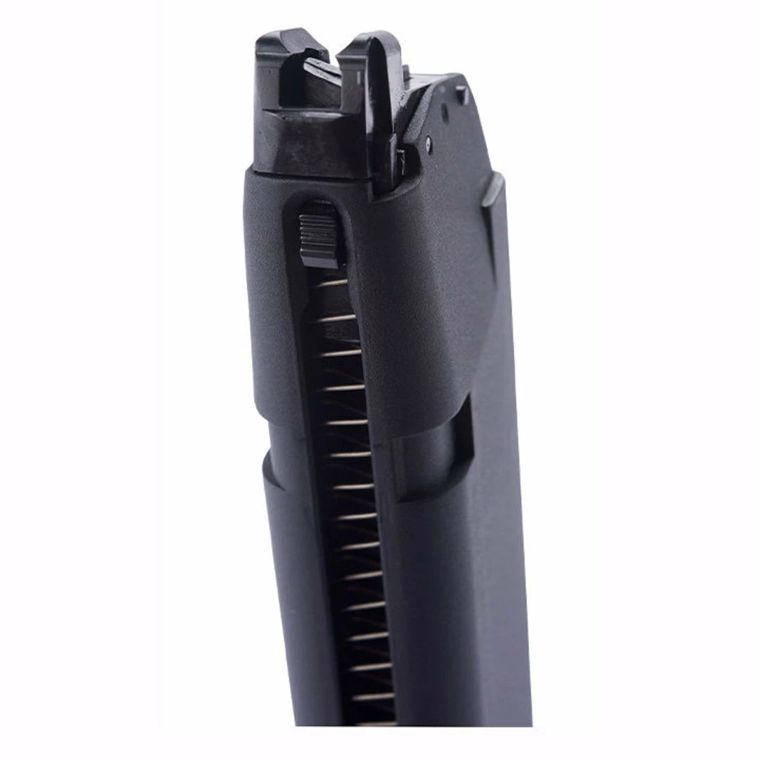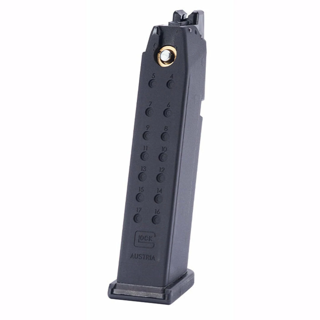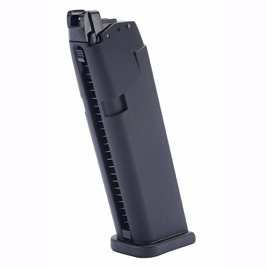 The Umarex GLOCK 17 Green Gas 20rd spare airsoft magazine by VFC is made from heavyweight aluminum, giving a hefty feel to the G17 airsoft pistol. This green gas Umarex magazine has a high-efficiency internal gas system providing excellent FPS output, and reinforced valves and seals for optimal gas retention. This magazine works in both Gen3 and Gen4 G17 airsoft pistols, as well as G18, G19 and G19X airsoft pistols. We recommend using Valken Green Gas with this gas pistol magazine.