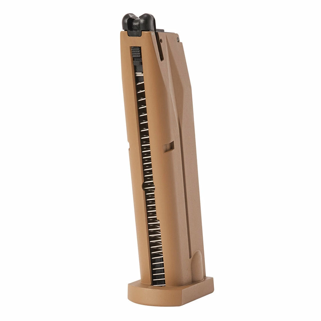 The Umarex 26rd Beretta M9 A3 Co2 spare airsoft magazine is made from heavyweight aluminum, giving a hefty feel to the M9 airsoft pistol. This Co2 Elite Force magazine has a high-efficiency internal gas system providing excellent FPS output, and reinforced valves and seals for optimal gas retention. We recommend using Valken 12g Co2 Cartridges with this gas pistol magazine.