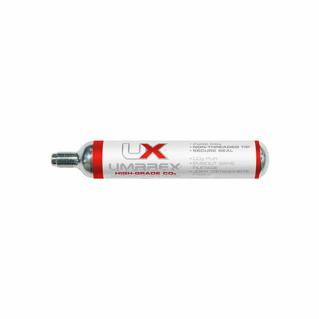 An ideal solution for players without access to nearby air fill stations, the Umarex 88 gram Co2 cartridge is an affordable, disposable CO2 source for paintball, airsoft or air guns. Usable on any paintball gun or air gun able to use CO2 as a power and propellant source (with adapter #96697), this disposable CO2 cartridge offers hundreds, rather than dozens of shots like smaller CO2 cartridges while remaining a simple and affordable option!