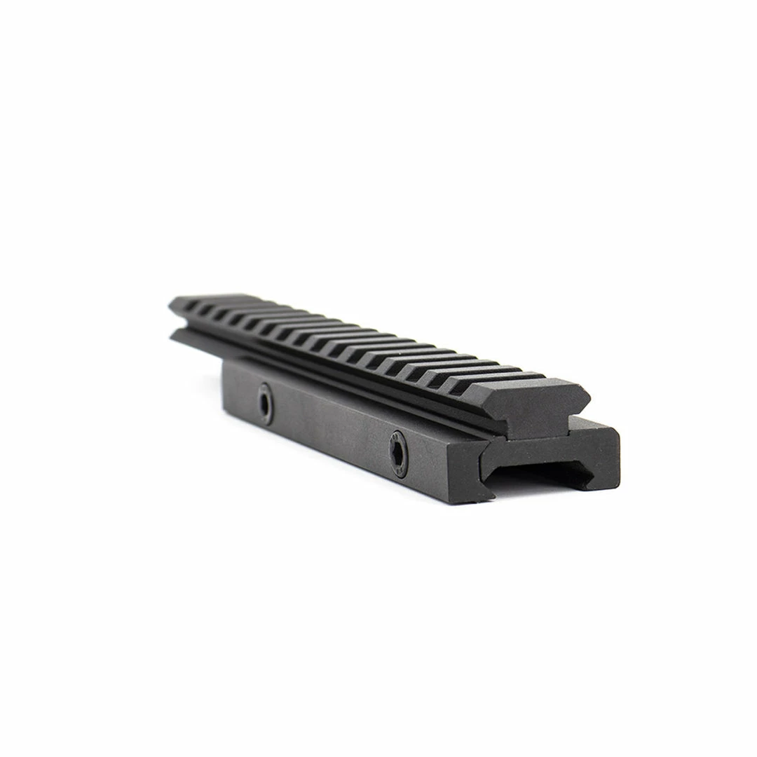 The Valken 0.5” 20 MOA Riser Mount with 16 ring slots is a rifle accessory that mounts to a flat top picatinny rail. This tactical riser