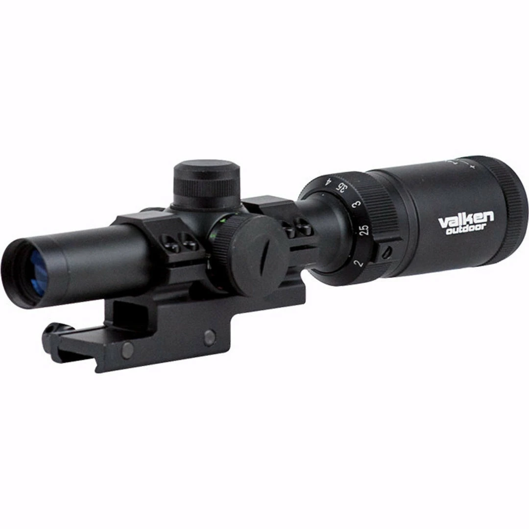 The Valken 1-4×20 Mil-Dot rifle scope is the ideal compact scope for an airsoft rifle. It has a super-wide field of view and extra long eye