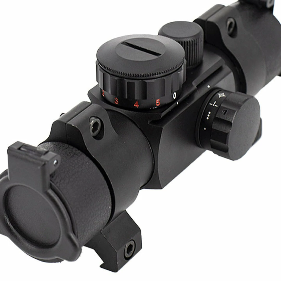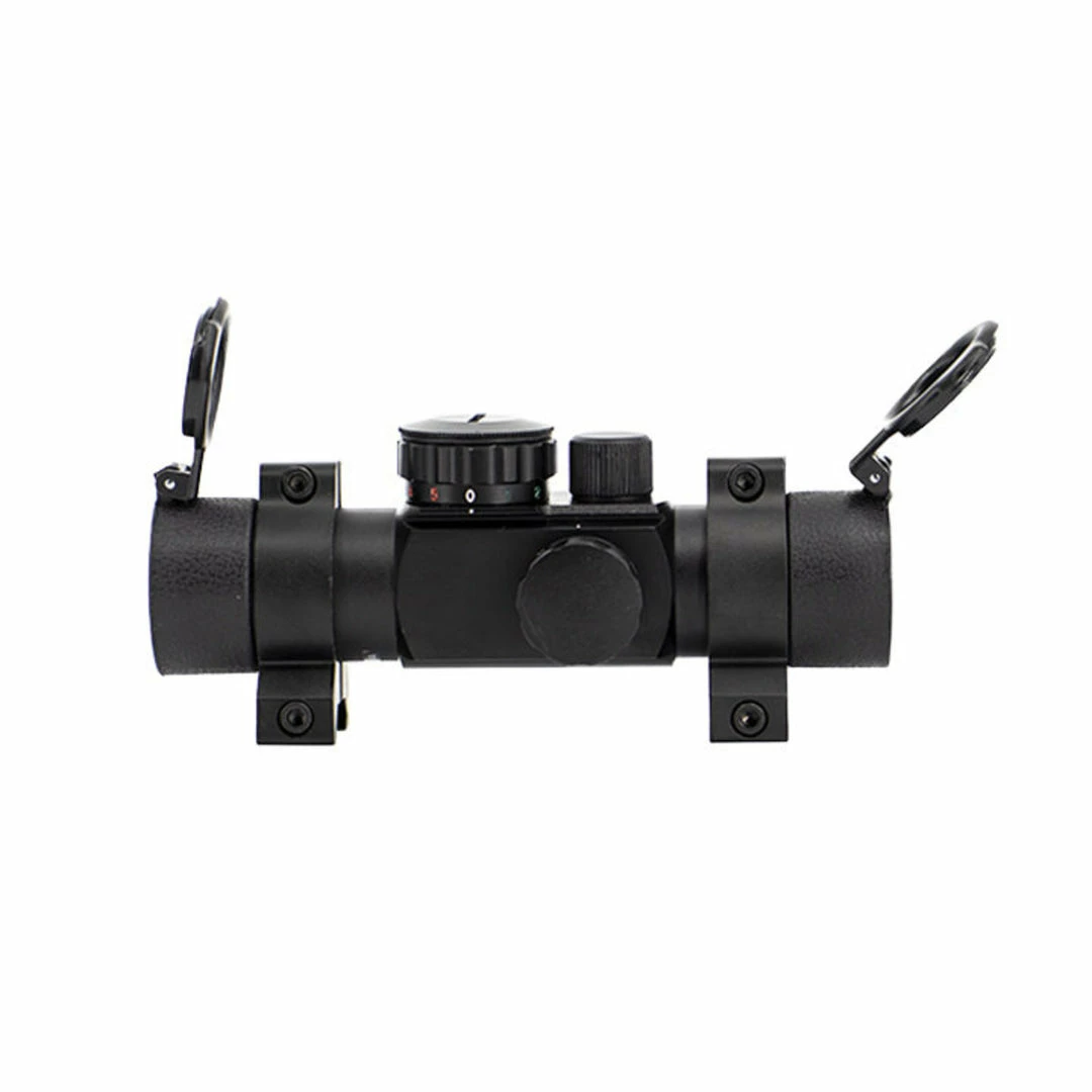 The Valken 1×30 Multi-Reticle Red Dot Sight is a low-profile tactical optic for airsoft rifles or SMGs. The red dot sight has a 30mm objective lens, and comes with flip-up lens covers. This airsoft optic has a rotary illumination control knob to adjust reticle intensity, and comes with multiple reticles in both red or green illumination. It also mounts to most 20mm picatinny and weaver rails with the included 30mm weaver rings. They feature adjustable elevation and windage turrets, and a 3 MOA reticle. We recommend our Valken Sight Protector Kit for use with this red dot sight.