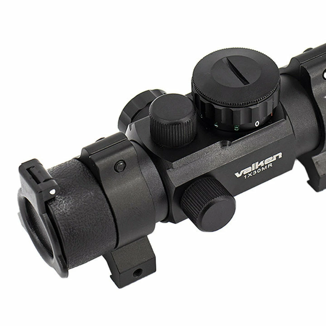 The Valken 1×30 Multi-Reticle Red Dot Sight is a low-profile tactical optic for airsoft rifles or SMGs. The red dot sight has a 30mm
