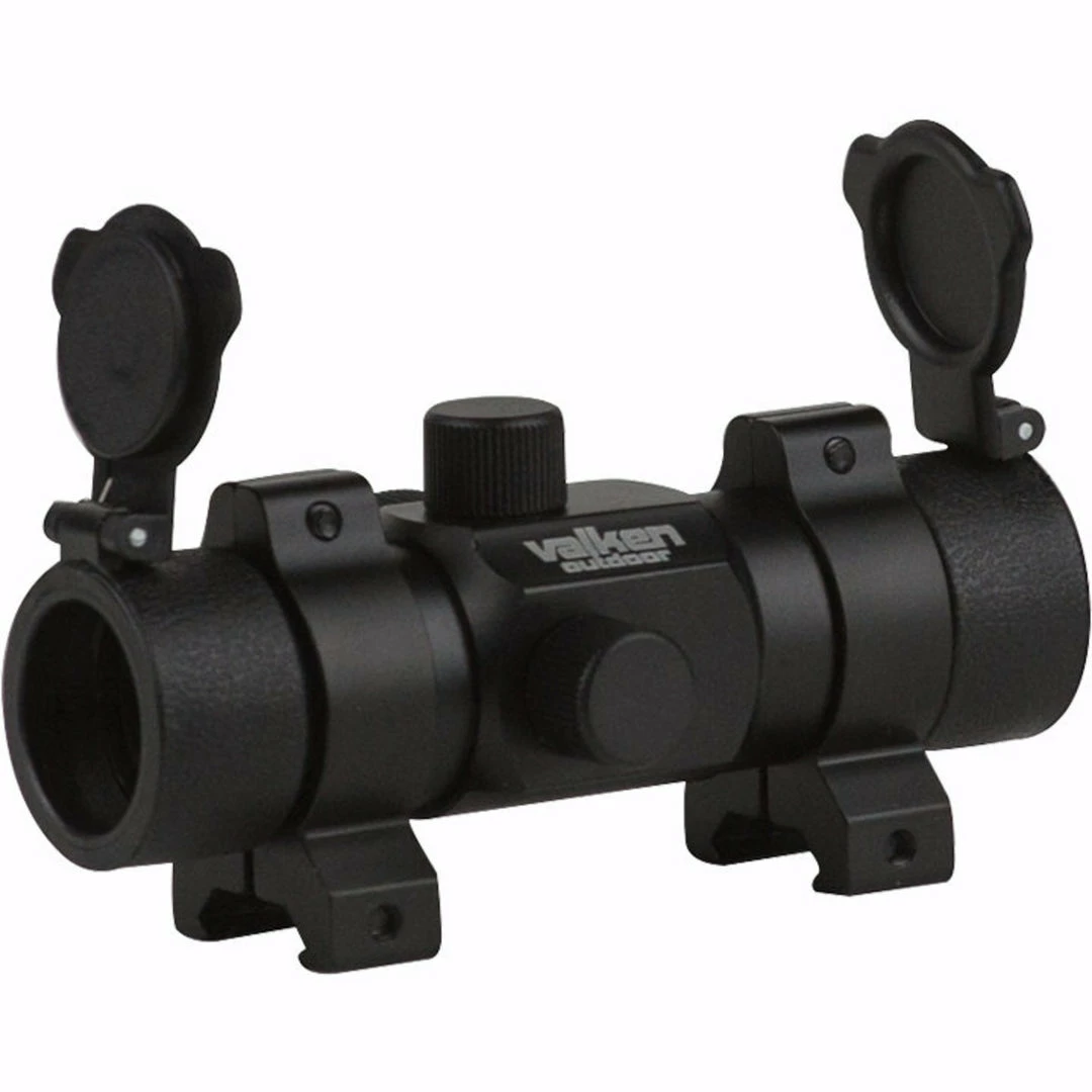 The Valken 1x30ST Red Dot Sight is a low-profile tactical optic for airsoft rifles or SMGs. The red dot sight has a 30mm objective lens, and comes with flip-up lens covers. This airsoft optic has a rotary illumination control knob to adjust reticle intensity at 10 different brightness settings for better contrast against your target background. It also mounts to most 20mm picatinny and weaver rails with the included 30mm weaver rings. They feature adjustable elevation and windage turrets, and a 3 MOA reticle. We recommend our Valken Sight Protector Kit for use with this red dot sight.