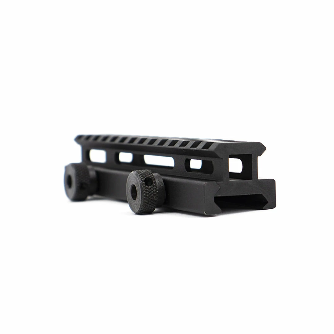 The Valken 3/4” Riser Mount with 14 ring slots is a rifle accessory that mounts to a flat top picatinny rail. This tactical riser mount is used to raise an optic’s line of sight by 3/4”, and locks firmly into place with two thumb screws. It installs in seconds, and is very helpful when using with full-size rifle scopes. We recommend our Valken 1-4×20 Mil-dot Scope for use with this riser when you need those longer ranged shots.