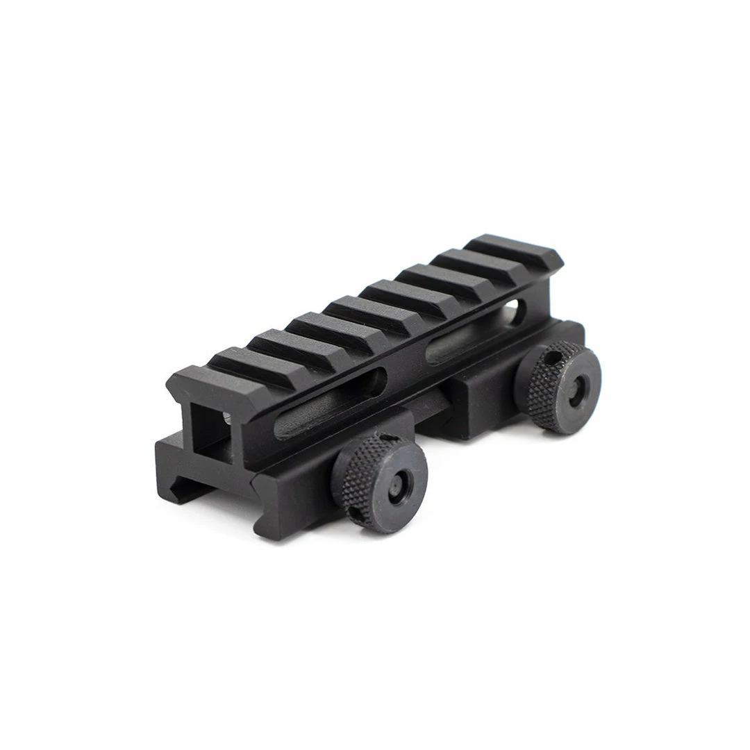 The Valken 3/4” Riser Mount with 8 ring slots is a rifle accessory that mounts to a flat top picatinny rail. This tactical riser mount is used to raise an optic’s line of sight by 3/4”, and locks firmly into place with two thumb screws. It installs in seconds, and is very helpful when using with red dot sights. We recommend our Valken 1×35 Multi-Reticle red dot sight for use with this riser when you need those longer ranged shots.