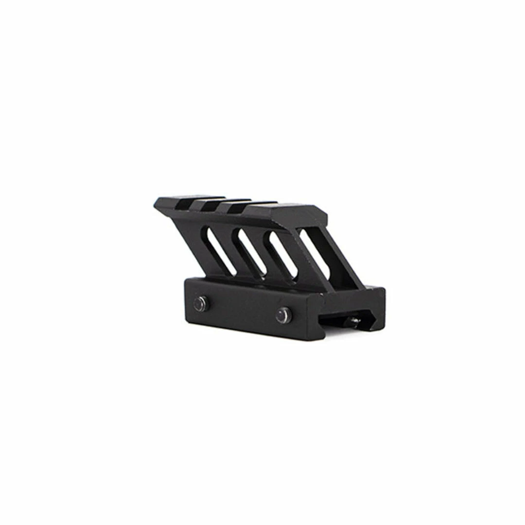 The Valken 45 Degree 1″ Cantilever Mini Riser is a rifle accessory that mounts to a flat top picatinny rail. This tactical mini riser is used to raise an optic’s line of sight by 1”, and locks firmly into place with two hex head bolts. It installs in seconds, and the skeleton body style keeps it lightweight. We recommend our Valken RDA20 red dot sight for use with this riser.