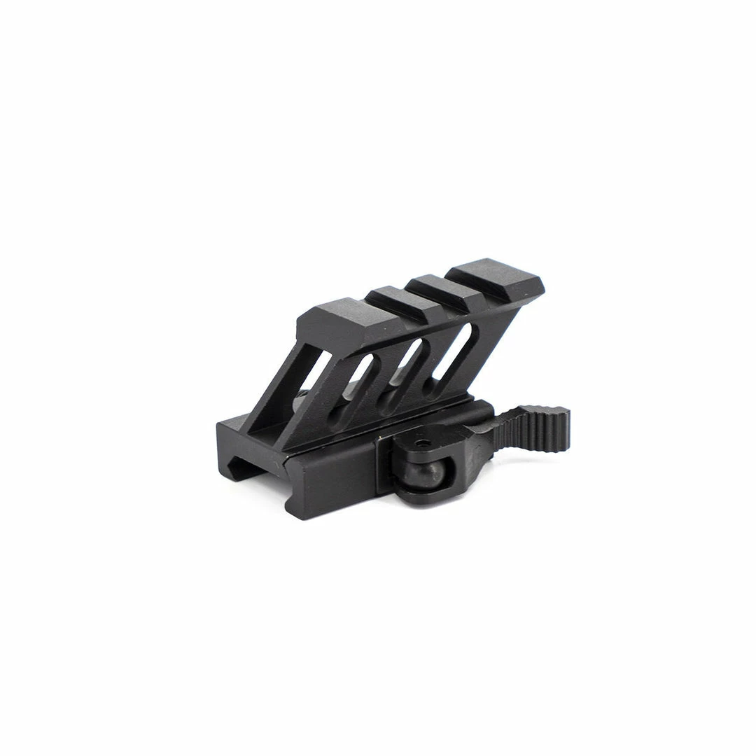 The Valken 45 Degree 1″ Cantilever Mini Riser 1” is a rifle accessory that mounts to a flat top picatinny rail with a quick detach lever. This tactical mini riser is used to raise an optic’s line of sight by 1”, and locks firmly into place with a QD cam lever lock. It installs in seconds, and the skeleton body style keeps it lightweight. We recommend our Valken RDA20 red dot sight for use with this riser.