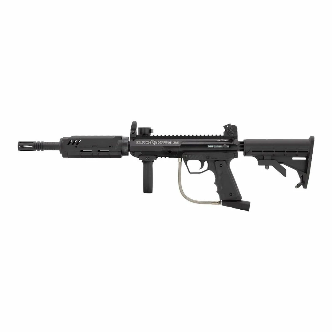 Whether a hard-core scenario operator or a recreational paintball player who needs their paintball equipment to look good, handle well and work every single time the trigger is pulled, the Valken Blackhawk Tango Rig paintball gun is the perfect choice! A lightweight yet durable mechanical paintball gun built around a rugged and time-tested inline blowback operating system that can handle even the worst weather conditions and keep right on firing, the Valken Blackhawk Tango Rig has been upgraded with everything a serious player needs to hit the field and win, including a tactical-style forward handguard with a vertical foregrip, an adjustable AR-style shoulder stock, a bottom line air adapter with a durable stainless steel hose, a clamping adjustable hopper adapter, a sight rail for the use of scopes or sights and a twelve inch ported aluminum barrel for consistent accuracy. Built tough and ready for action, the Valken Blackhawk Tango Rig delivers the form and function any serious players needs to accomplish any mission!