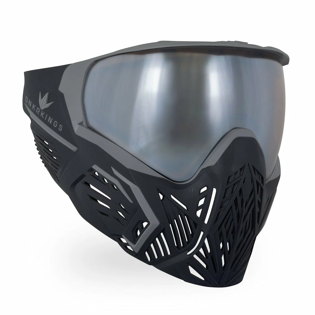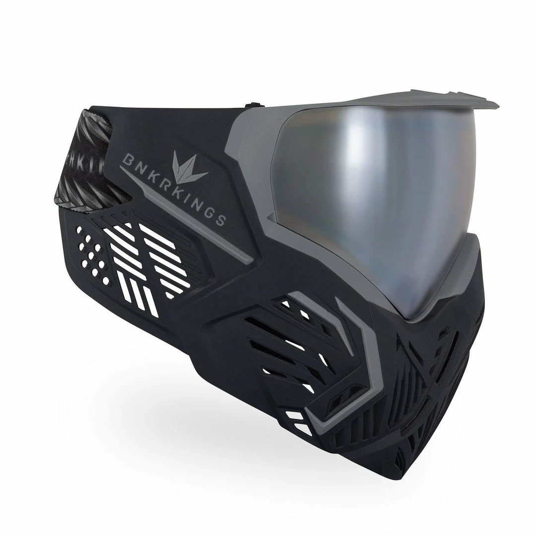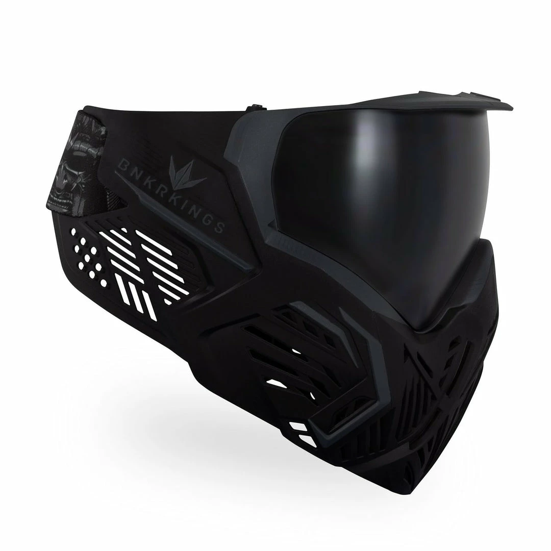 One of the hottest new pro-level paintball goggles in the game, the Bunkerkings CMD goggle is packed with features paired with an unmistakable look! Built around the versatile and proven Virtue Vio goggle and lens system, the Bunkerkings CMD paintball goggle offers thermal, fog-free performance, comfortable and interchangeable face foam, a quick-change lens system and high-flow ventilation to keep cool air moving through the facemask. The flexible facemask itself was designed to improve communication and reduce echoing, and a standard “micro visor” not only reduces glare and keeps moisture and paint spray out, but helps protect the lens from scratches when a player inevitably lays their goggle down somewhere. Unique and packed with features, the Bunkerkings CMD paintball mask is an outstanding choice for any serious paintball player!