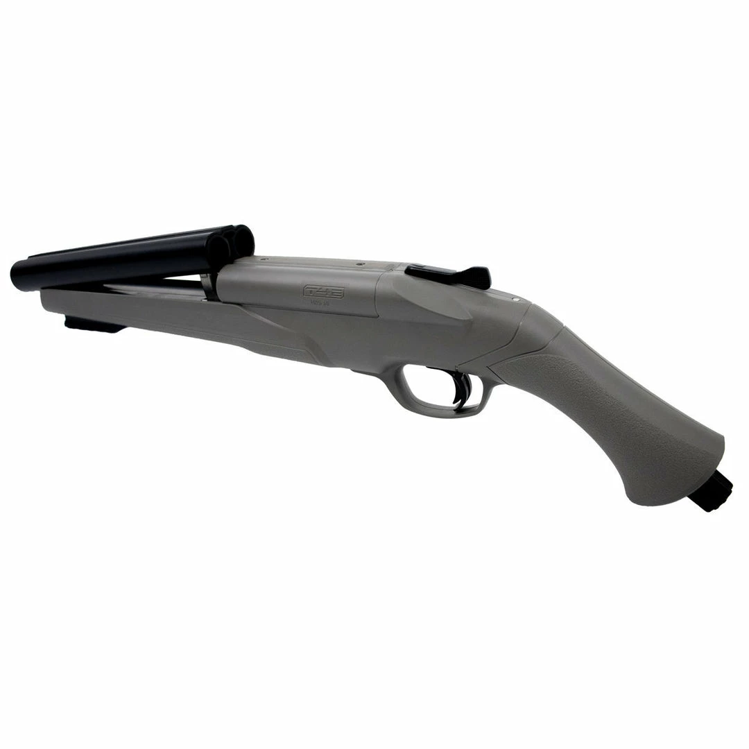 The double-barreled Home Defense Shotgun 68 combines power and speed. Thanks to its quick-piercing system it’s ready to use at any time. With a light blow on the bottom of the grip you can puncture the CO₂ capsule whenever the occasion demands. The Valken Combat Grey Umarex HDS 68 paintball shotgun comes with a Picatinny rail under the barrel for mounting lights or lasers, and a pressure indicator. The large .68 caliber allows you to use rubber balls, pepper balls, chalk balls and paintballs, which can be shot individually or simultaneously from both barrels.