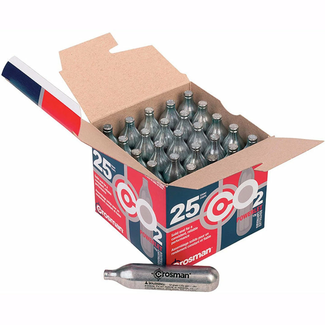 The Crosman 12g Co2 Powerlet Cartridges are pre-filled, disposable 12 gram Co2 cartridges. These Co2 12 gram cartridges provide up
