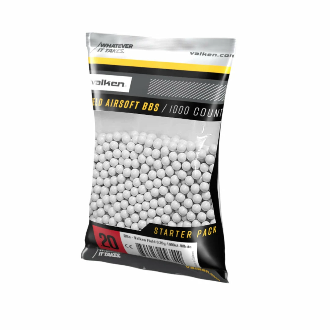 These Valken Field 0.20g plastic airsoft BBs are the perfect airsoft starter pack for rental guns, or new airsoft players. These 6mm BBs from Taiwan are highly polished and seamless giving you greater accuracy and consistency, and they are packaged in a resealable bag making storage, transport, and loading simple and convenient. We recommend using our Valken airsoft BB Speed Loaders for use with Field BBs when loading mid-cap magazines.