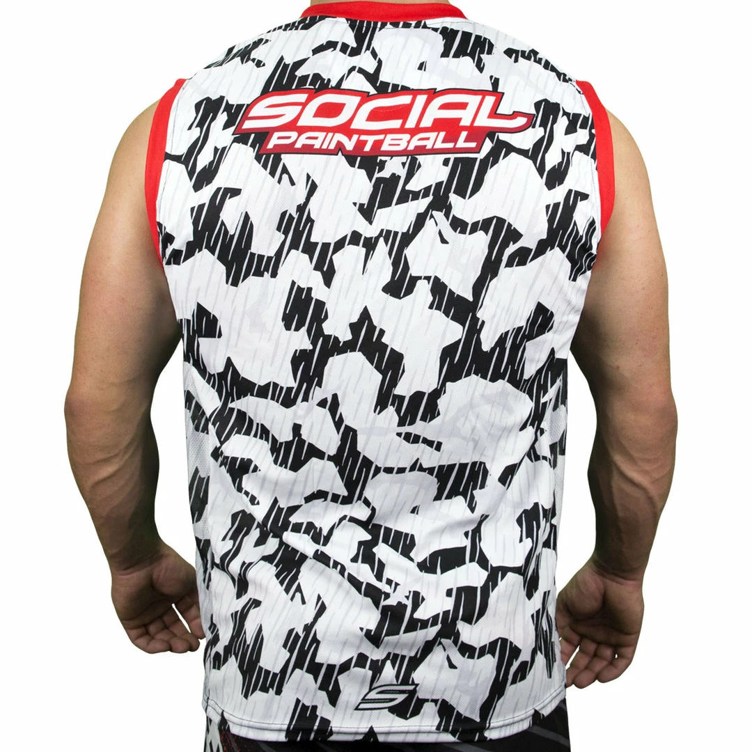 Our Grit Sleeveless paintball jerseys are 100% dye sublimated with amazing high quality color saturation onto a lightweight, moisture-wicking polyester fabric. Each sleeveless jersey has mesh side panels and v-neck collar. They are loose fit, light, comfortable, and provide great breathability, allowing moisture vapor to be transmitted through the material. This results in keeping you cool. So now you can look cool and feel cool, literally. Perfect as an every day shirt or as a practice jersey during warmer climates.