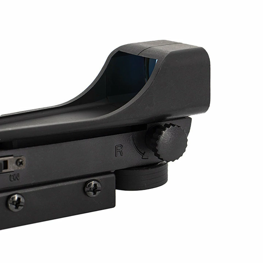 The Valken Molded Red Dot Sight is an airsoft optic that comes with dual mounts. The reflex sight has a strong molded polymer housing, and mounts onto either a 3/8” dovetail rail or groove receivers, or most 20mm weaver rails. This airsoft red dot comes with a CR2032 battery to illuminate the 5 MOA red dot. We recommend our Valken Sight Protector Kit for use with this red dot sight.