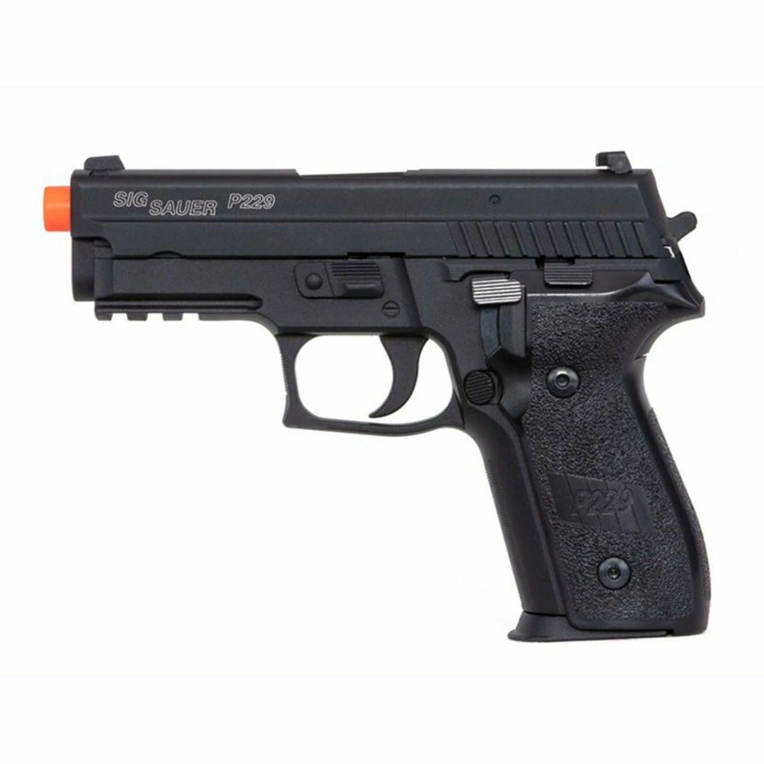 The Sig Sauer ProForce P229 GBB airsoft pistol is a green gas airsoft pistol that has ultra-realistic all-metal construction that is a fully licensed Sig Sauer product. This Sig P229 airsoft pistol feels as close to real as is possible in an airsoft pistol. The slide action blowback creates the feeling of shooting an actual firearm. This 229 pistol has an accessory rail under the barrel for mounting various accessories, and also comes with a functioning decocker. This Sig airsoft gun is fully field strippable, and can be used with both green gas and Co2 magazines. We recommend our Valken green gas for use with this Sig Sauer airsoft pistol.