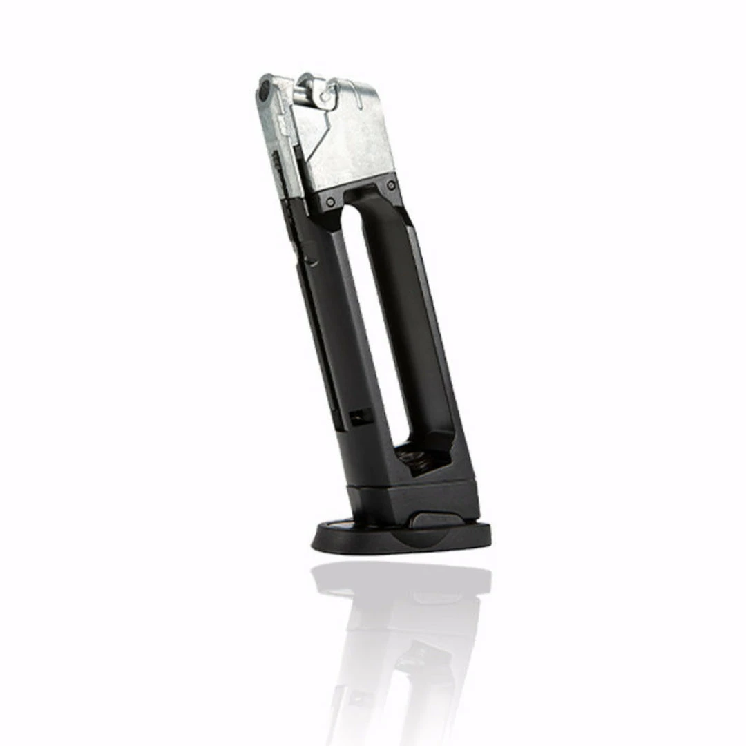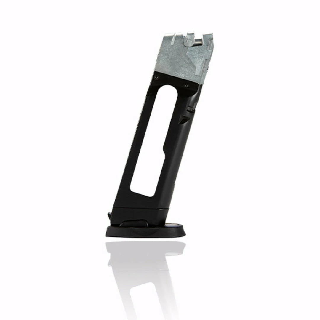 The S&W M&P9 M2.0 Co2 16rd spare airsoft magazine is made from heavyweight aluminum, giving a hefty feel to the S&W M&P9Â