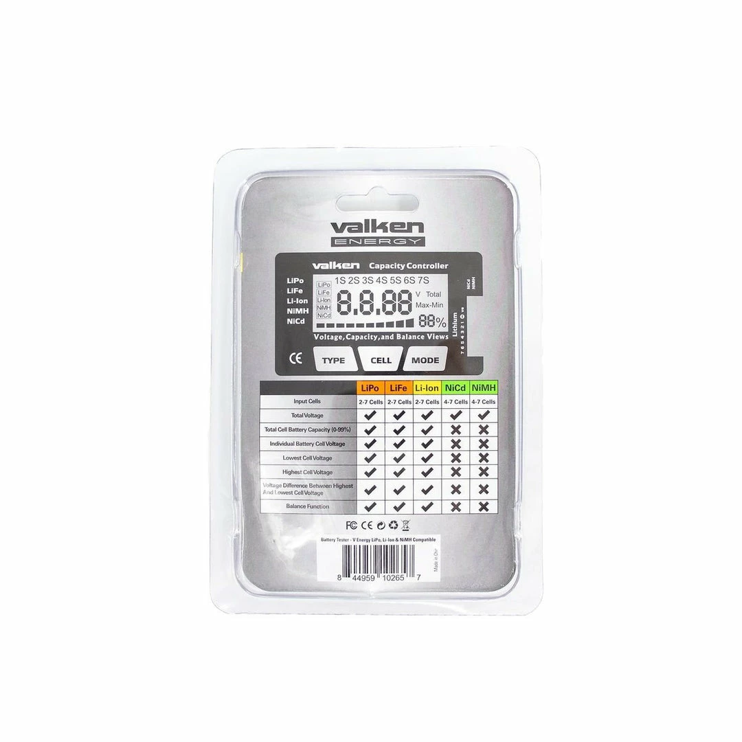The Valken Battery Tester is a great personal item to have to make sure your battery pack is still game ready after countless number of uses! The airsoft battery tester can quickly check the remaining charge of various NiCd, NiMh, LiFe, LiPo, and Li-Ion airsoft battery packs. It’s easy to read digital display lets you know at a glance if your airsoft battery pack needs to be recharged. The battery tester also displays the voltage of each cell, so you know when the battery pack needs to be balanced. It can also display the internal resistance of each individual cell, so you can evaluate the health of your battery pack and decide when to discard or replace it. We recommend using any of our Valken airsoft battery packs with this battery tester.