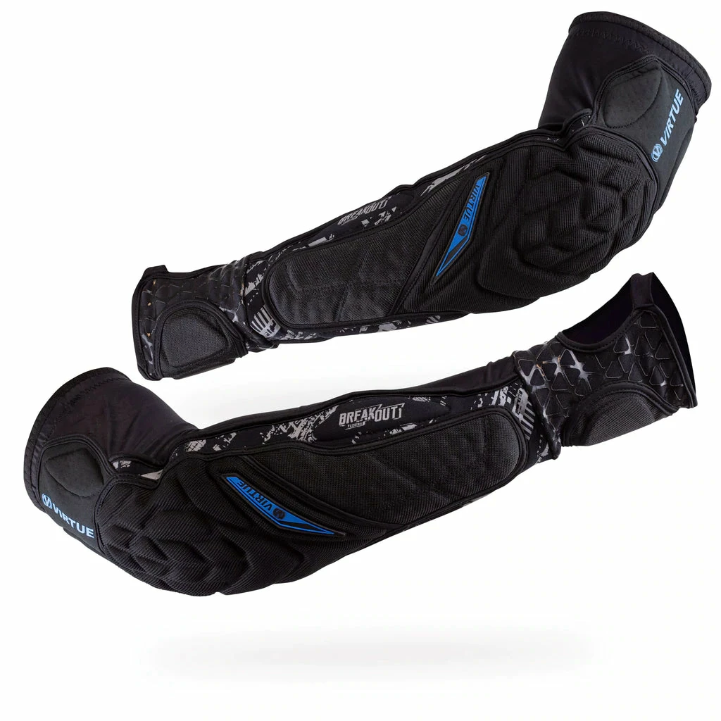 The new Virtue Breakout arm pads are 30% lighter and less bulky than competing pads, giving you total protection , without sacrificing durability, mobility or comfort. The breathable neoprene sleeve is lined with our moisture-wicking SkinSaver™ material. Allowing the Breakout pads to dry quicker and stop your skin getting irritated during use. Made with durable tear-resistant surfaces and padded stretch zones which offer lightweight impact protection and flexibility. The high-density 3D molded pads are formed to fit perfectly round your elbow. The Breakout pads are Built To Win, no bulk, no excuses.